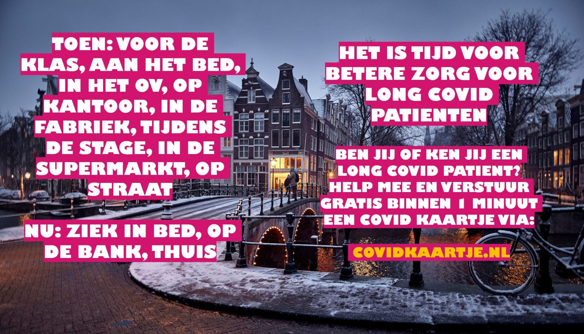 Steun 100.000+ Nederlanders met Long Covid klachten. Verstuur gratis en binnen 1 minuut een digitale Long Covid kerstkaart via covidkaartje.nl