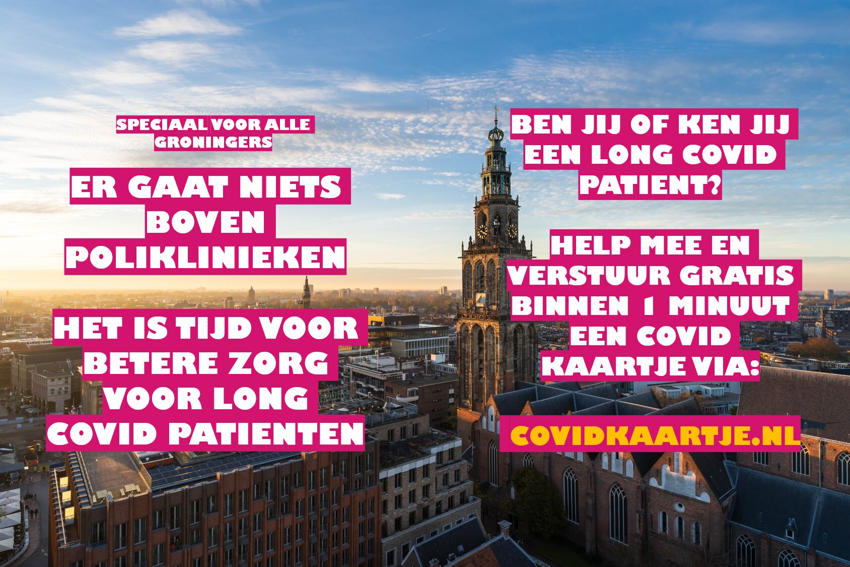 Je kan de kaarten via de onderstaande knop downloaden en die delen via socials, bijvoorbeeld Facebook, Whatsapp, Instagram of Twitter. Op die manier weten nog meer mensen van deze actie om Long Covid patiënten meer aandacht te geven en om de overheid ervan bewust te maken dat betere zorg noodzakelijk is voor Long Covid patiënten.
